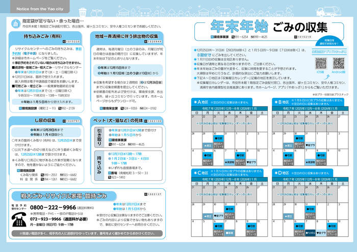 - 12月25日(木曜)から1月9日(金曜)の期間は、年末・年始の収集体制となります。
